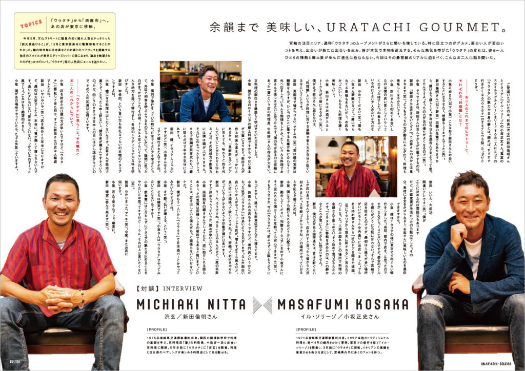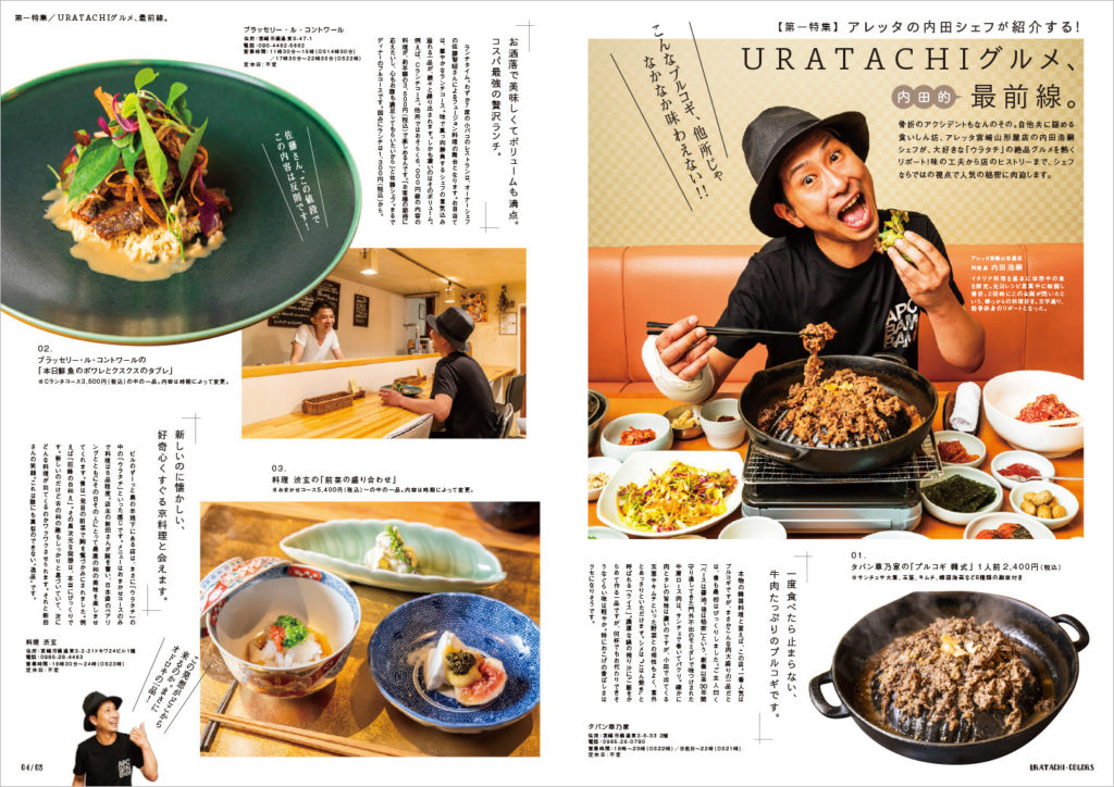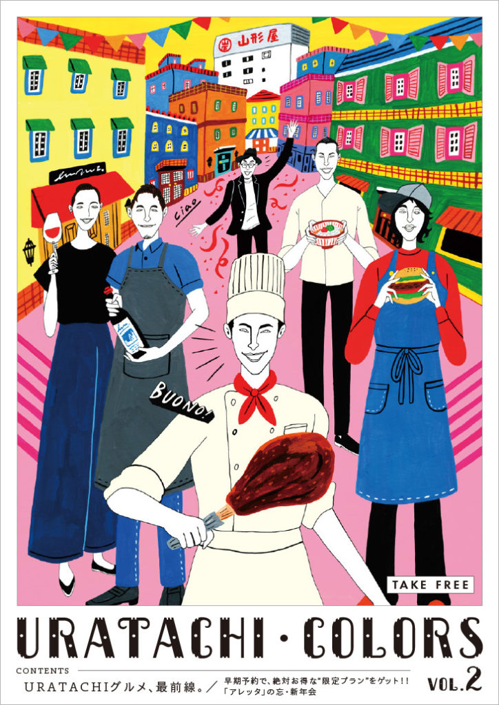 宮崎山形屋の裾野に広がる『ウラタチ(裏・橘通東の略)』と呼ばれるエリアの活性化を目的として「ワールドグルメバイキング アレッタ」さんが発行しているフリーペーパーの第2弾を今回も制作させていただきました。前回の制作時よりも飲食店が増えていて、徐々にですが面白い街になっていってます。