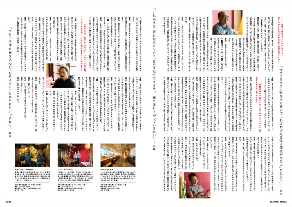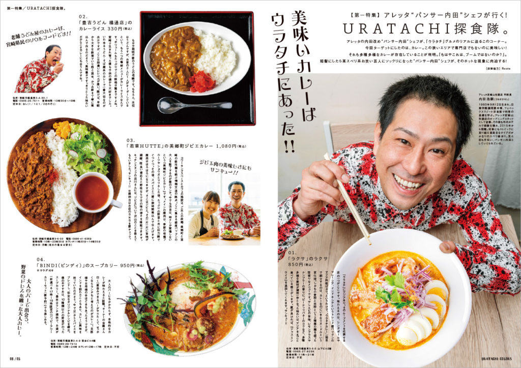 宮崎山形屋の裾野に広がる『ウラタチ(裏・橘通東の略)』と呼ばれるエリアの活性化を目的として「ワールドグルメバイキング アレッタ」さんが発行しているフリーペーパーの第3弾。今回も制作させていただきました。前回の制作時よりも、いい意味で個性的な飲食店が増えていて、宮崎でも注目のグルメエリアへと変貌しています。