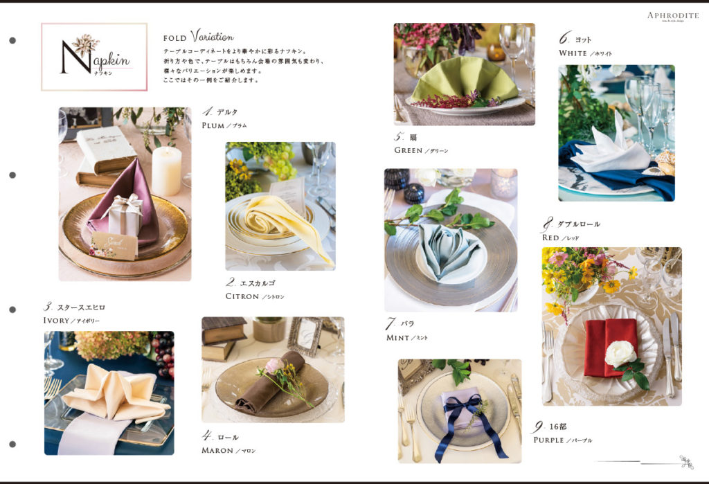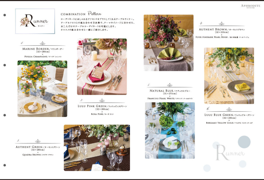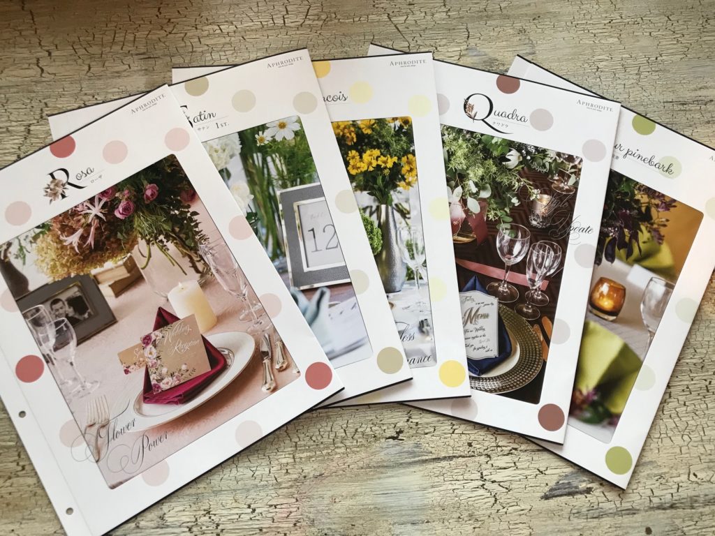 ウエディング事業を全国で展開されている「アフロディーテ」さんのテーブルクロスカタログとオリジナルのバインダーの制作をさせていただきました。