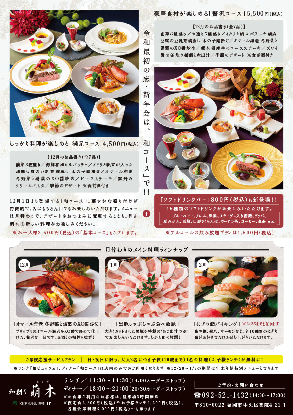 和創り「萌木」さんの『和コース』を紹介するフライヤーの制作をさせていただきました。