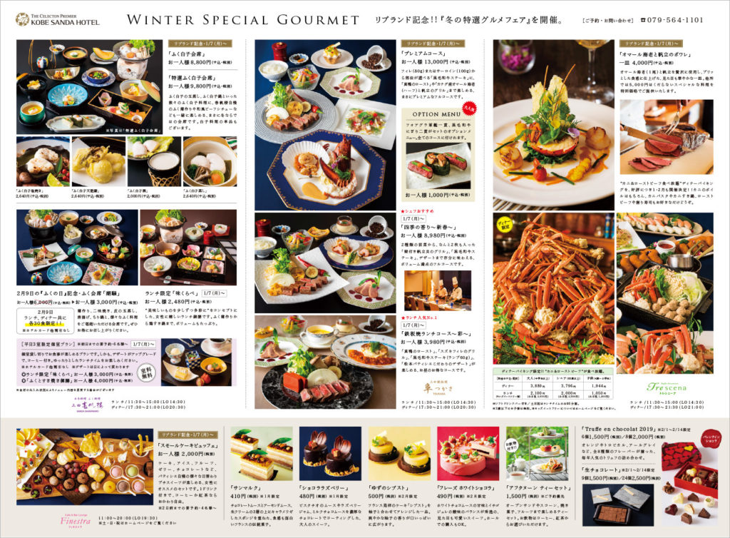 「ザ・セレクトンプレミア 神戸三田ホテル」さんの1・2月のフェア内容を紹介する販促ツールを制作させていただきました。