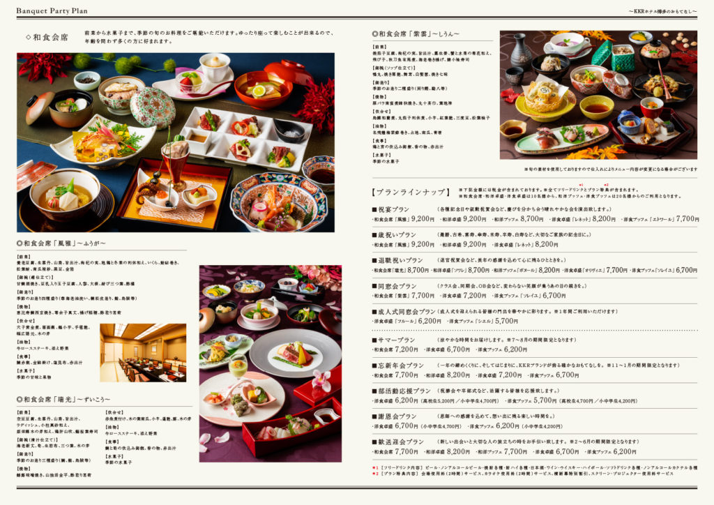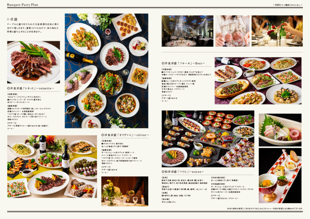 歓送迎会やレセプション、忘・新年会など、ホテルバンケットを使用してのパーティープランを1冊にまとめた販促ツールを制作させていただきました。